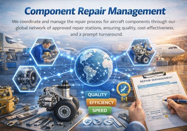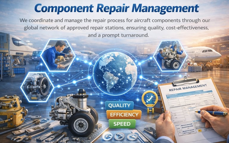 We coordinate and manage the repair process for aircraft components through our global network of approved repair stations, ensuring quality, cost-effectiveness, and a prompt turnaround.